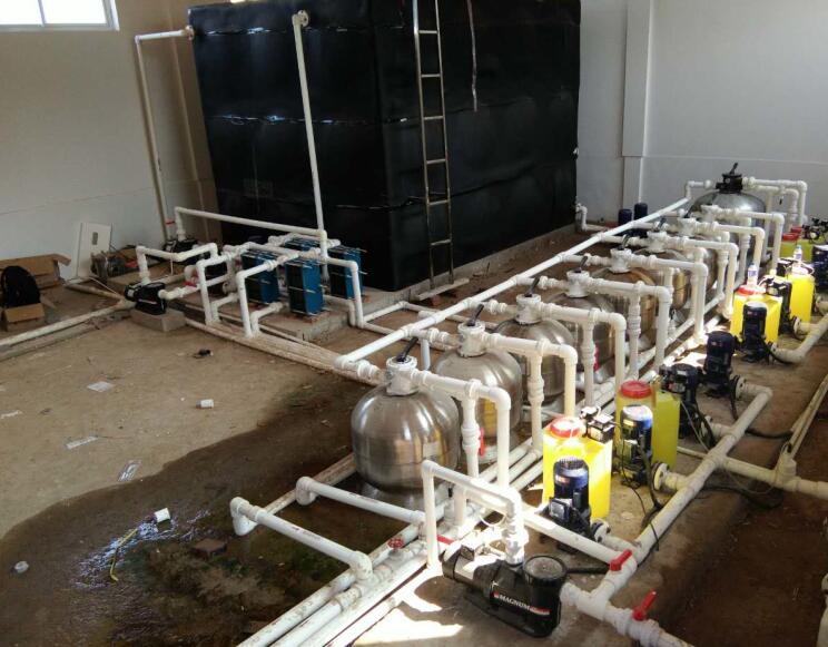 池水由設(shè)在深水區(qū)的回水口通過循環(huán)水泵提升至沙缸過濾器,經(jīng)過過濾、消毒等程序之后達(dá)到處理的要求,然后由池壁進(jìn)水口回到泳池內(nèi),從而完成池水循環(huán)過程。
