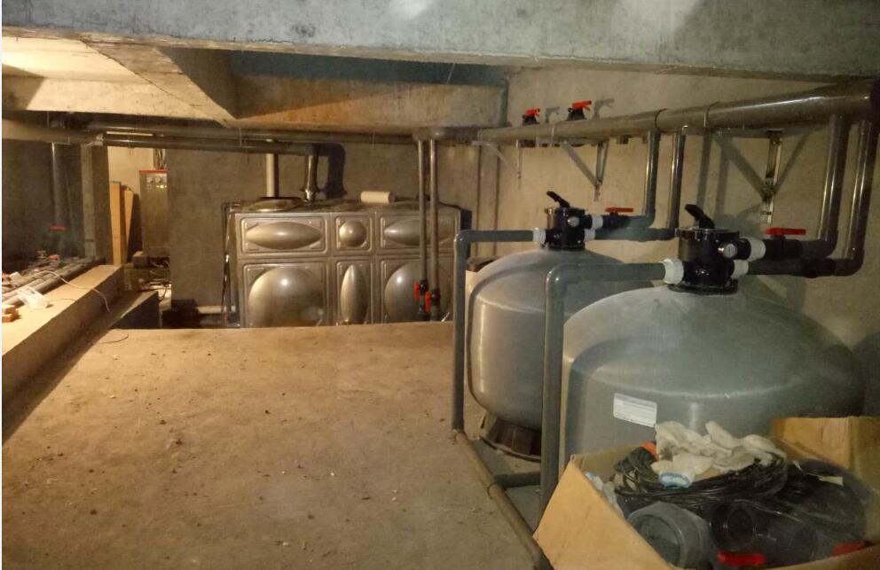 主要設(shè)備:亞士圖沙缸過濾器、意大利科沛達(dá)泳池專用泵、金濤水質(zhì)監(jiān)測儀、藍(lán)白計量泵、新力板式換熱器、愛克臭氧紫外線一體消毒器、不銹鋼均衡水箱